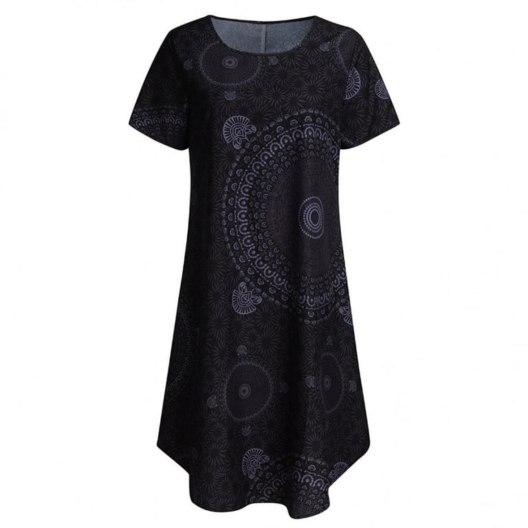Ženske haljine slobodnog kroja s kratkim rukavima i okruglim izrezom. Print s šarenim uzorkom. Na izbor više varijanti. Veličine do 5XL.