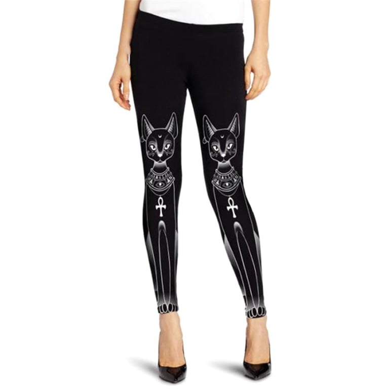 Damske tajice s mačjim motivom Simhona – crne