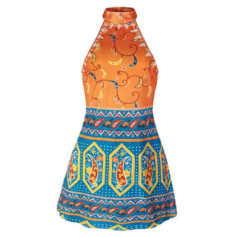 Elegantne mini boho haljine Marselei – plavo-narančaste