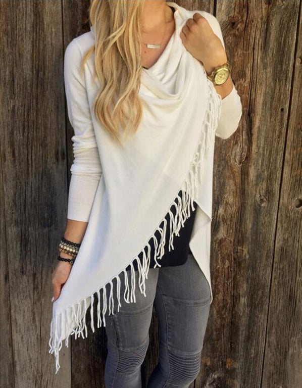 Prekrasan elegantni omotani pulover s dugim rukavima i resicama. Pogodan je za svakodnevno nošenje.