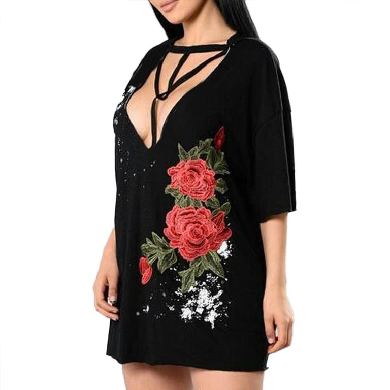 Elegantni top s ružama Maredit – crni