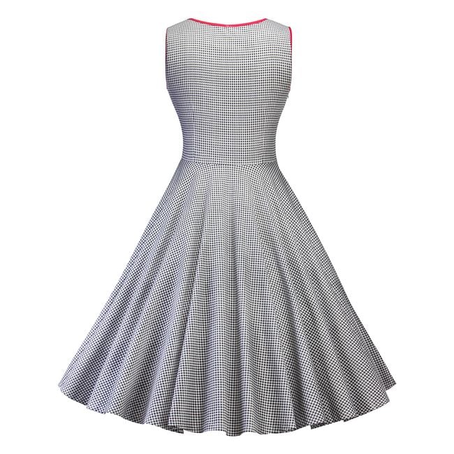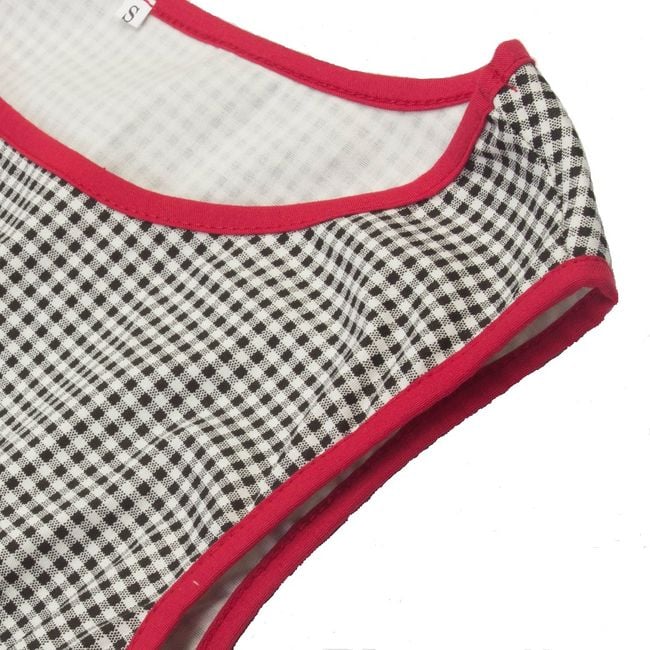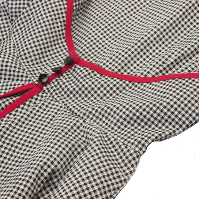 Dame retro karirane haljine s crvenim rubom i suknjom u punom krugu. U tablici veličina navedene su mjere proizvoda, a ne tijela.