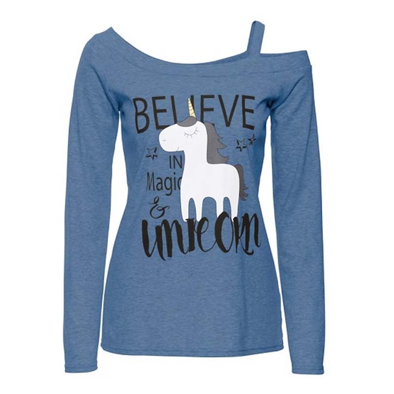 Stilizirani top s dugim rukavima i motivom jednoroga! Uživajte u udobnosti u šik topu, bilo kod kuće ili na poslu.