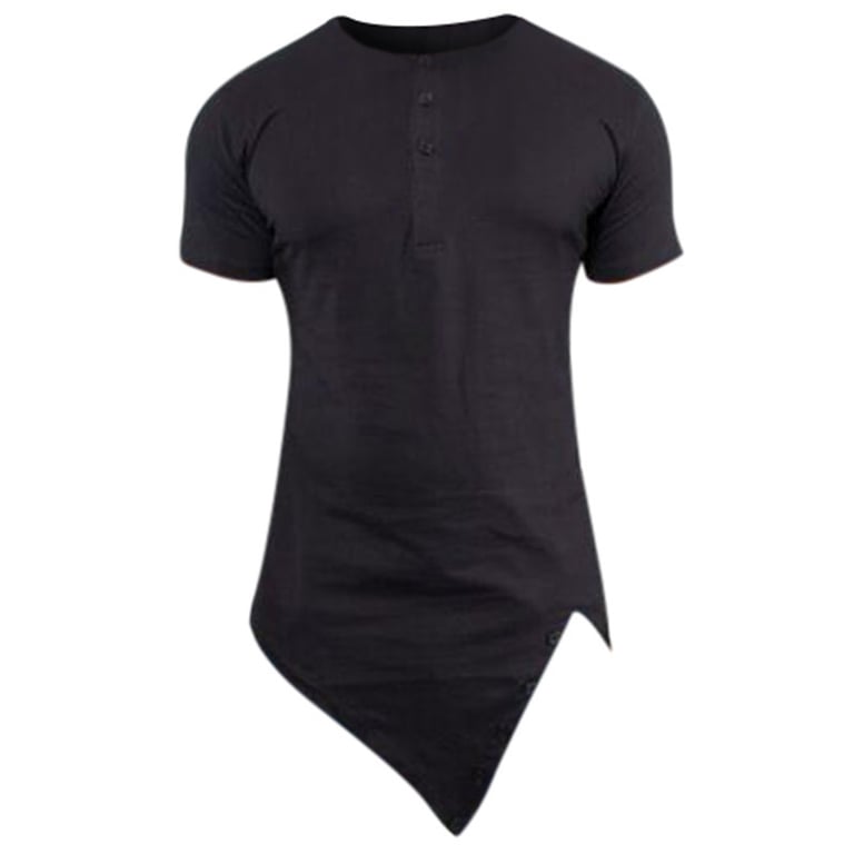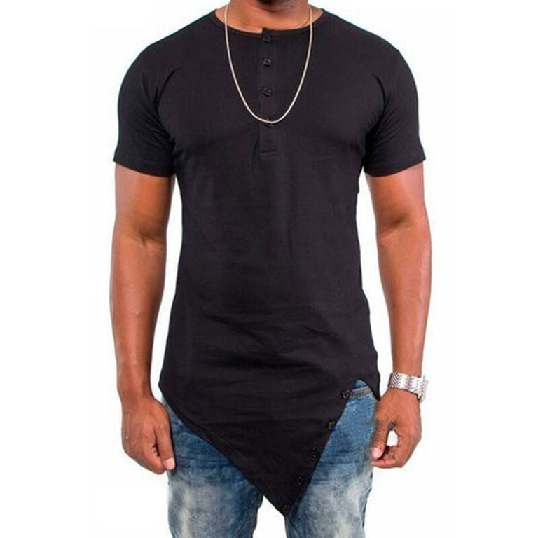 Muška majica s kratkim rukavima i izrezom s gumbima. Prilagodljiv asimetrični kroj. Dostupna u više boja.