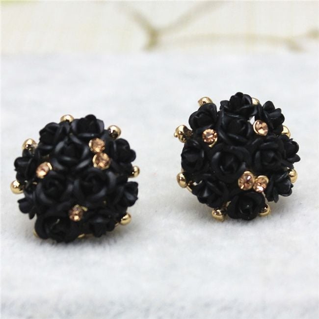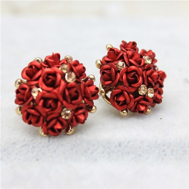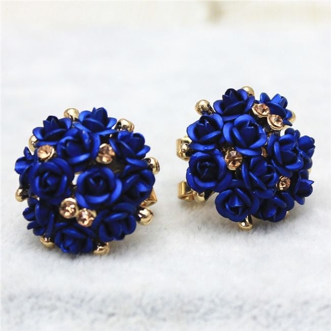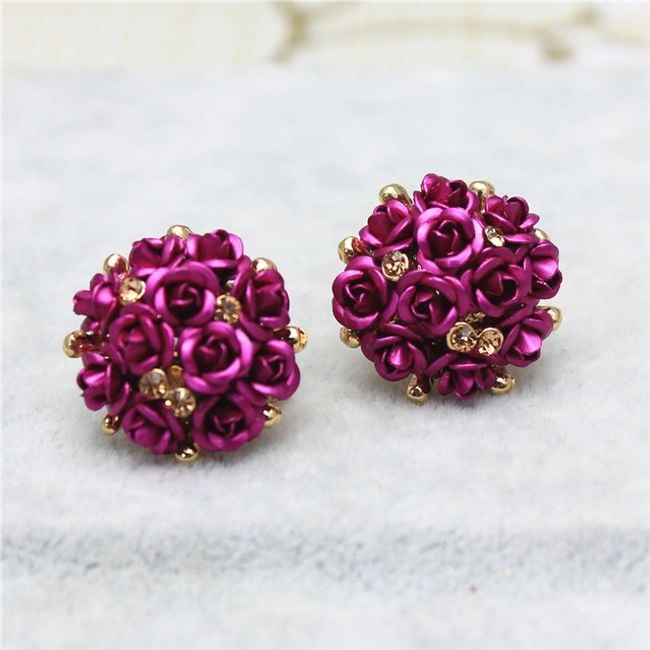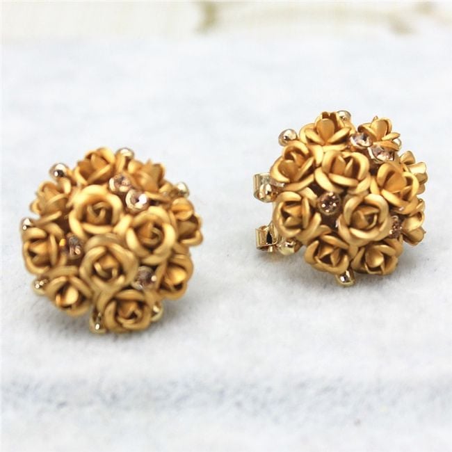 Naušnice sastavljene od mnoštva malih ružica ukrašene su sjajnim kamenčićima.