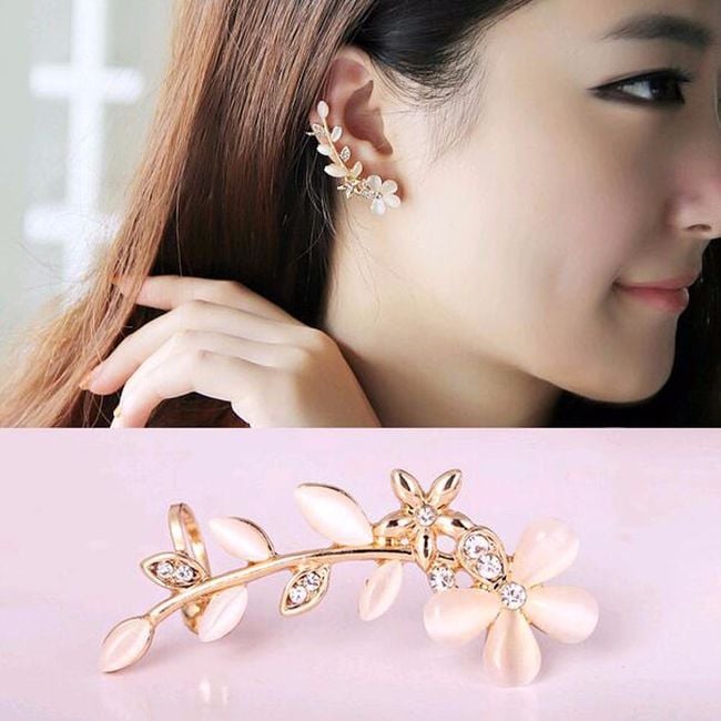 Naušnice u obliku cvijeta s listovima ukrašavaju cijelo uho. Pakiranje sadrži 1 kom.