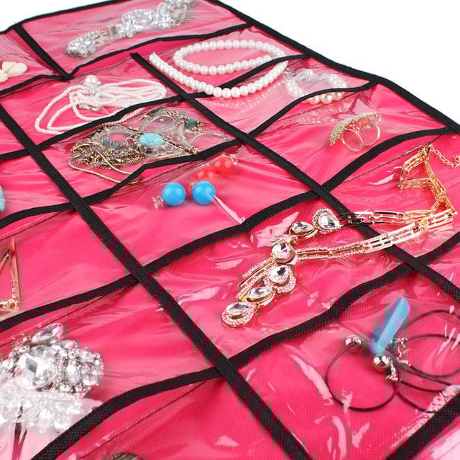 Organizator je viseći, ima 17 džepova i može se jednostavno objesiti na vješalicu.