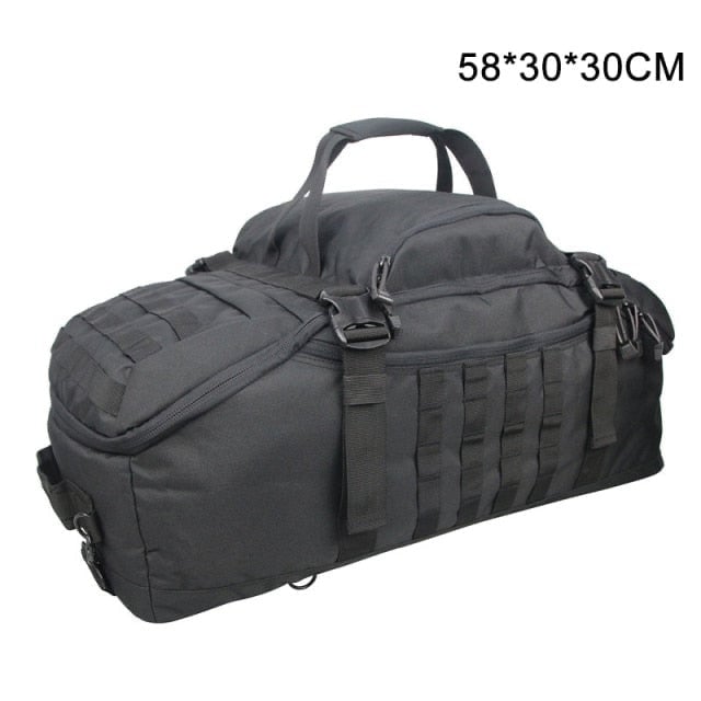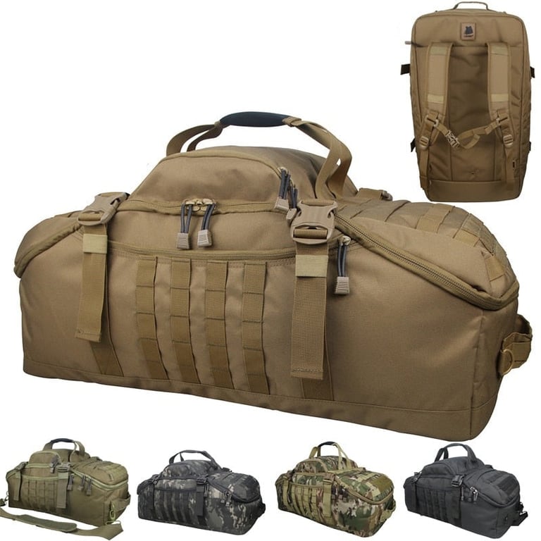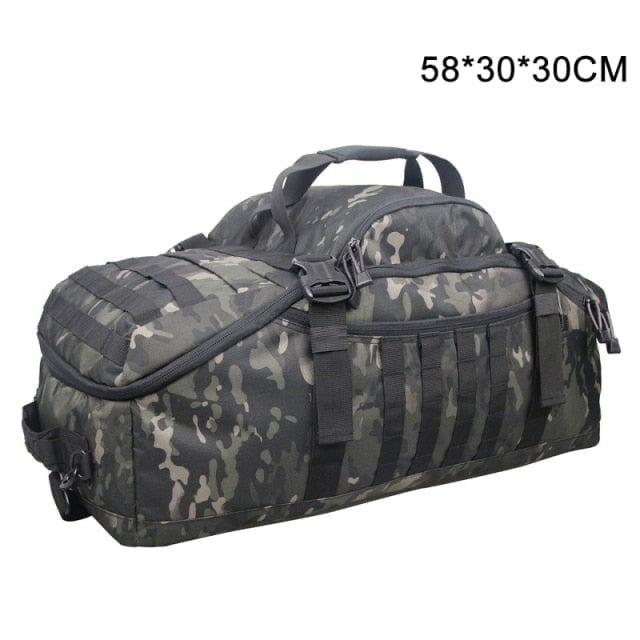 Putna torba od 60 l u taktičkim bojama, koju se može nositi kao ruksak.