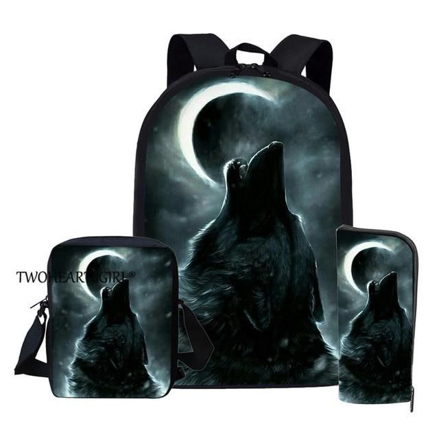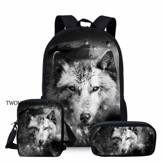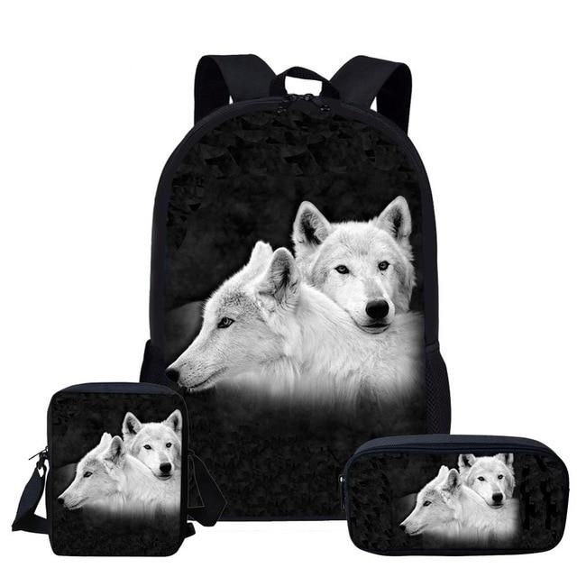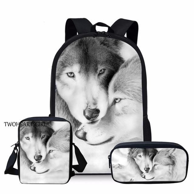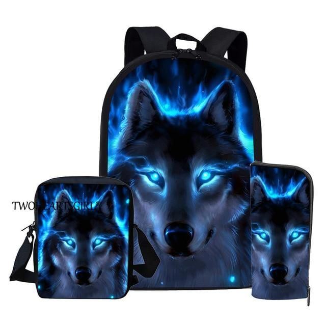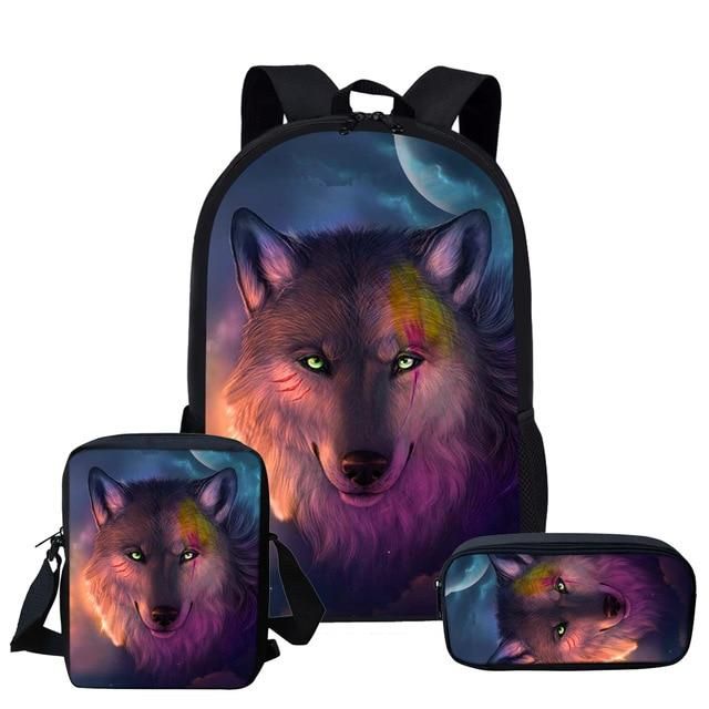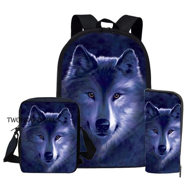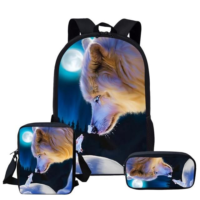 Ruksak s printom vuka. Ostali tipovi. Mogućnost kupnje pernice i torbe.