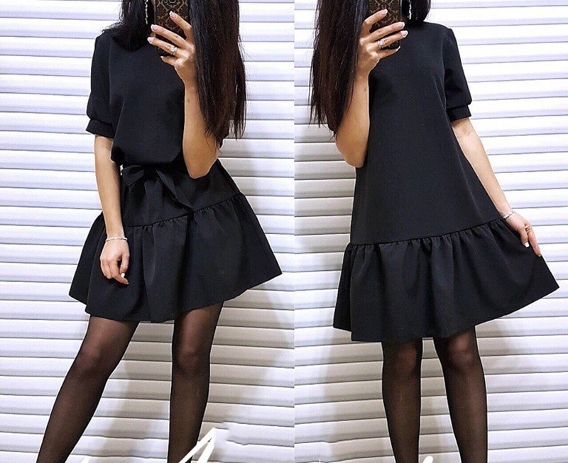 Jednostavne ženske haljine s kratkim rukavima i suknjom s volanom.
