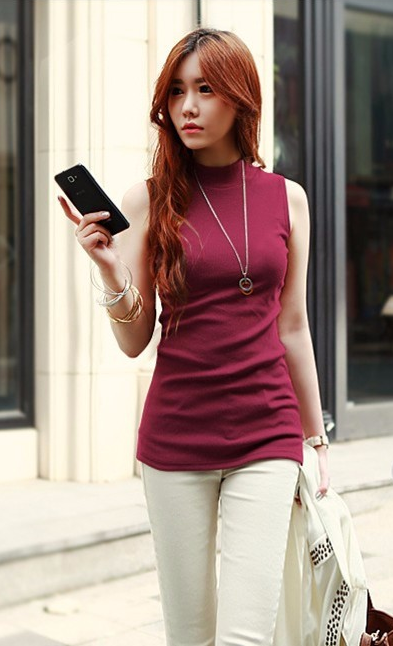 Ženska bluzica bez rukava s niskom rolom. Elegantni kroj. Pogodna za suknju i hlače.