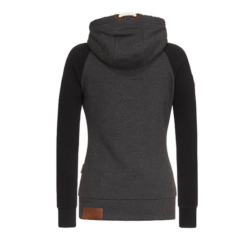 Ženska dukserica s kapuljačom i vezicama. Dukserica ima zatvaranje na zip i dva bočna džepa. Dostupna u nekoliko boja.