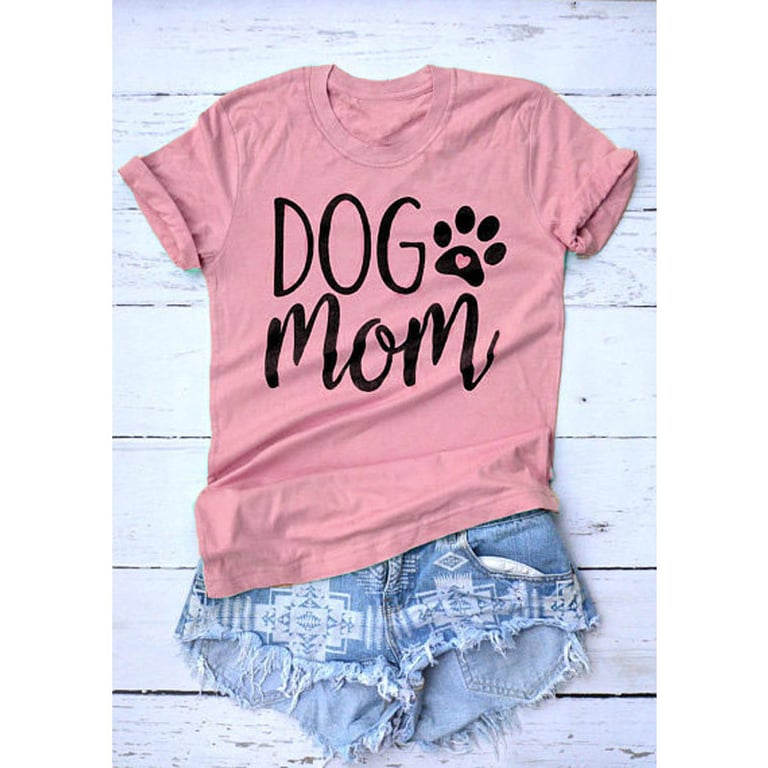 T-shirt za ljubitelje pasa s otiskom šape i natpisom “pasja mama”. T-shirt ima kratke rukave i dostupan je u ružičastoj boji.