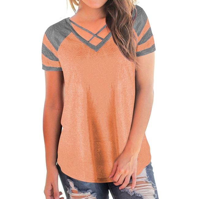 Stylish ženska majica s kratkim rukavima ima V izrez s križnim vezanjem. Dostupna je u 4 boje.