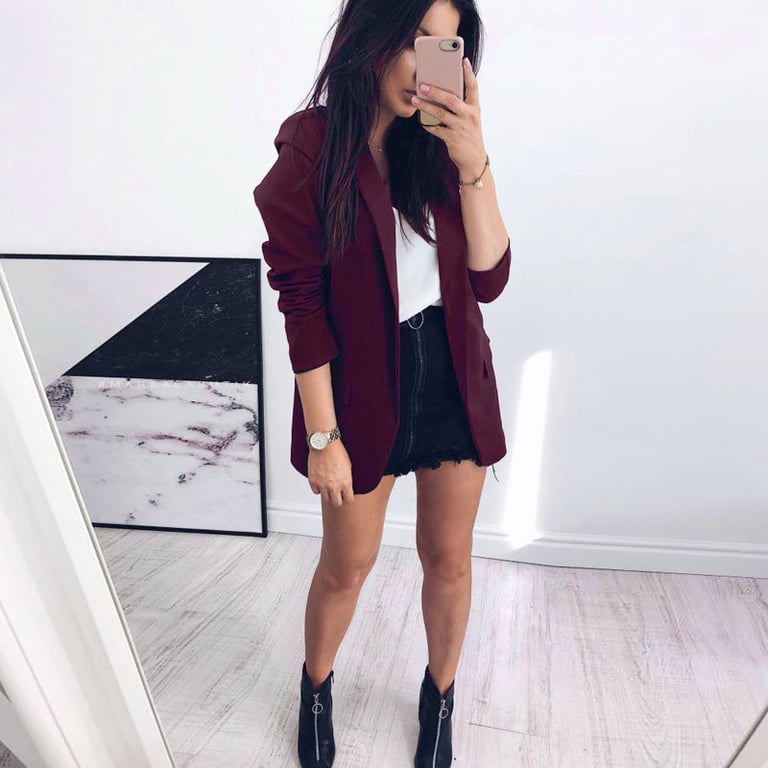 Ženska jakna u elegantnom jednobojnom izdanju. Slobodan ravni oversize kroj. Jakna ima ovratnik s reverima i dva bočna džepa. Dostupna u dvije boje.