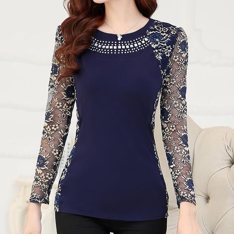 Ženska tamnoplava bluzica s cvjetovima