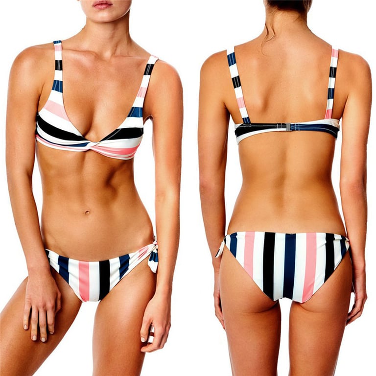 Udobne ženske bikinije s modernim prugama.
