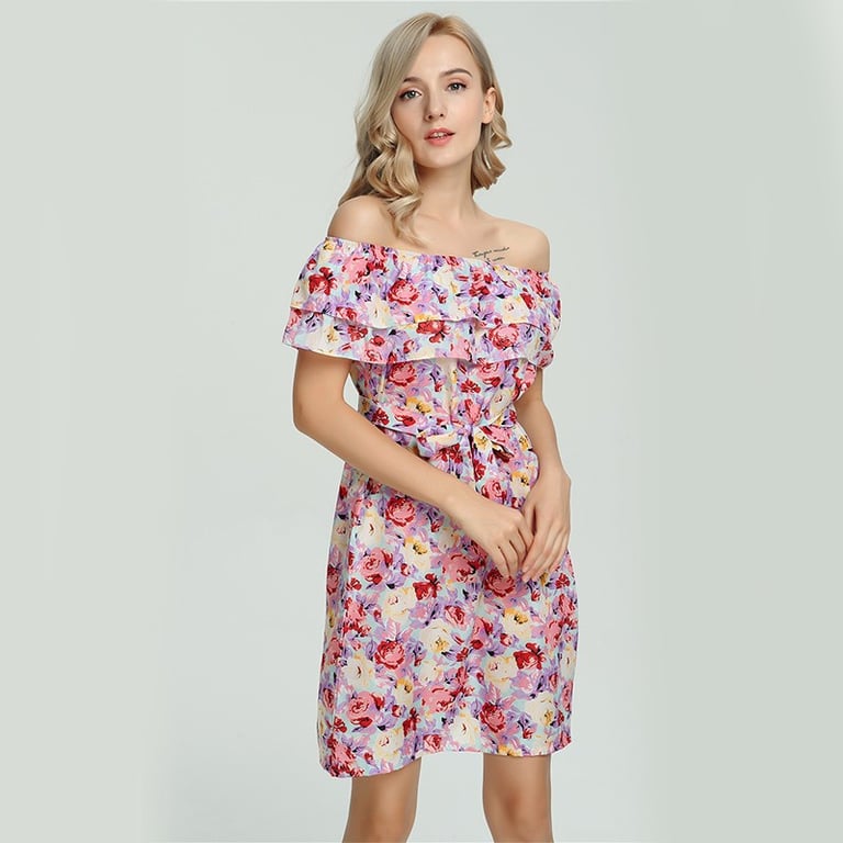 Ženske boho haljine bez ramena Julene – ružičasti cvjetovi
