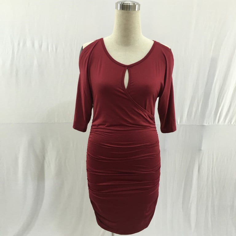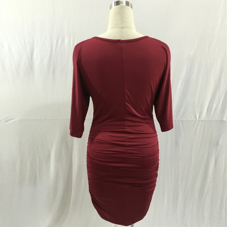 Ženske haljine Monique s polu dugim rukavima – vino crvena