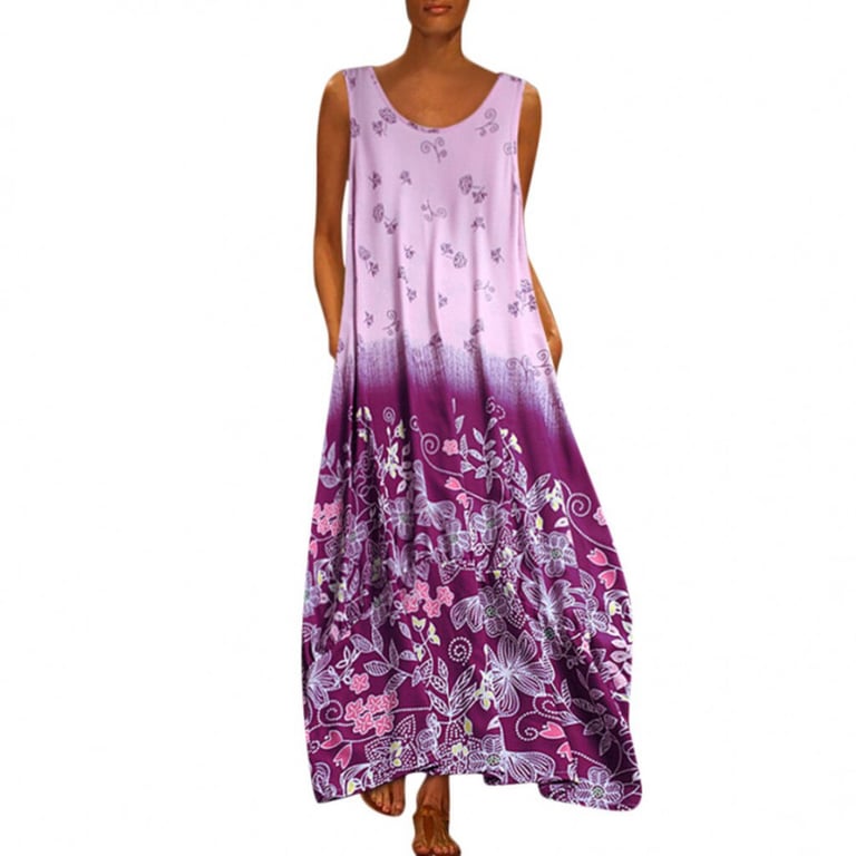 Ženske duge haljine bez rukava. Slobodan udoban kroj. Print s šarenim uzorkom. Više varijanti.