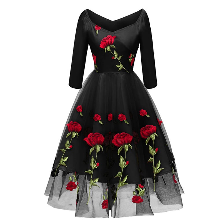Elegantne večernje haljine s atraktivnom aplikacijom ruža.