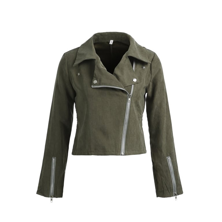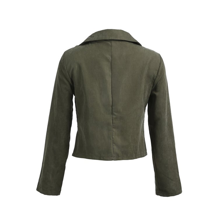 Stilna jakna s asimetričnim zatvaranjem, kraćim krojem i dužim rukavima.