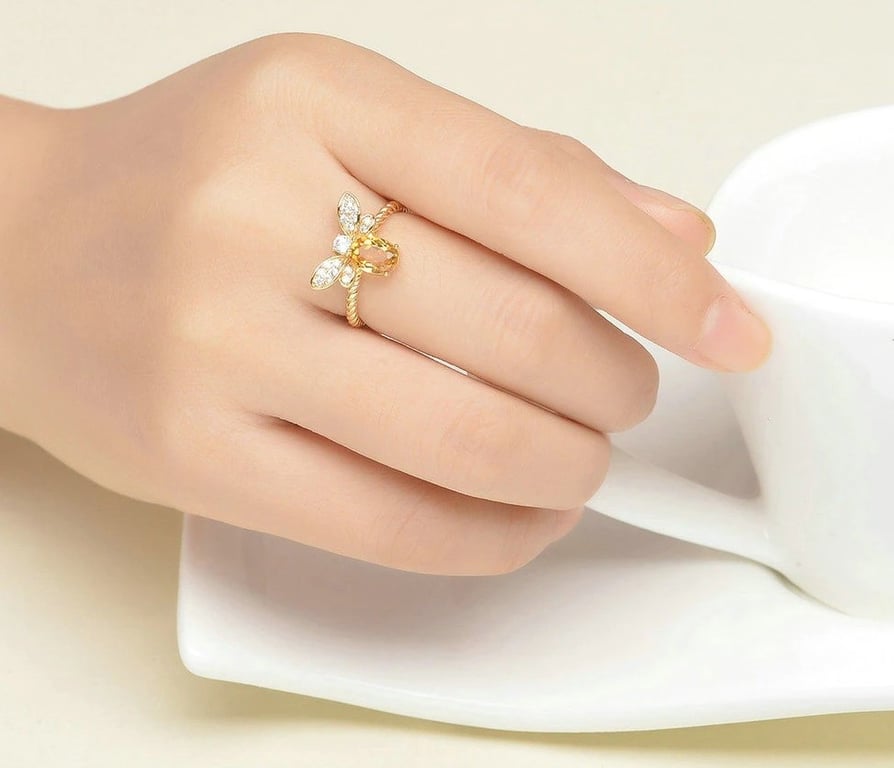 Materijal: bijuterijski metal, imitacija citrina, cirkon