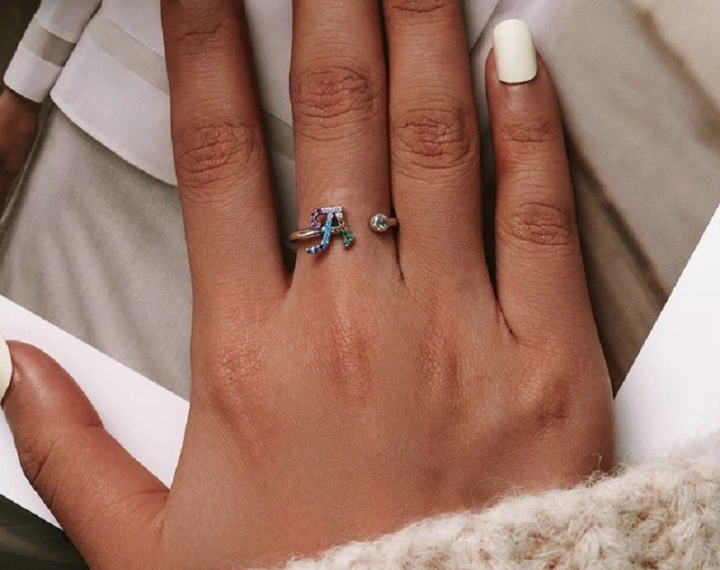 Ženski prsten s slovom abecede