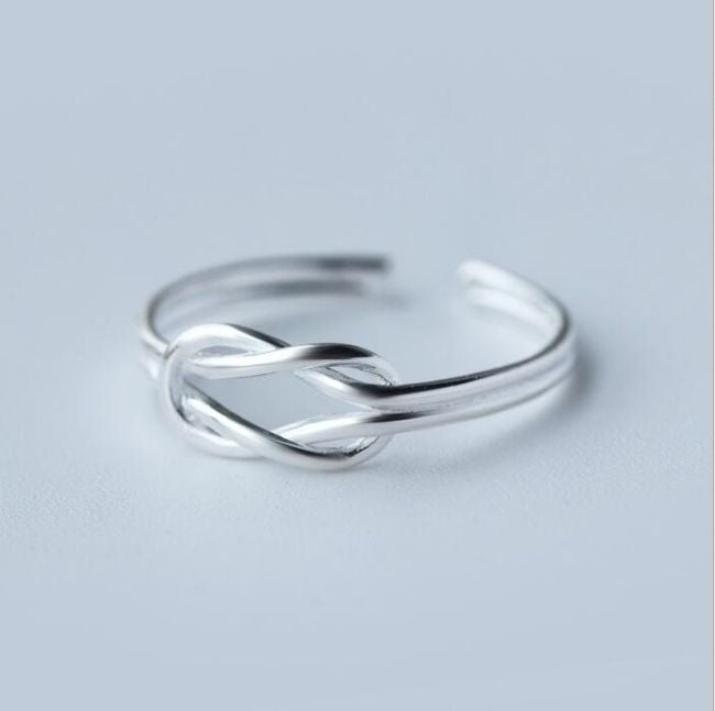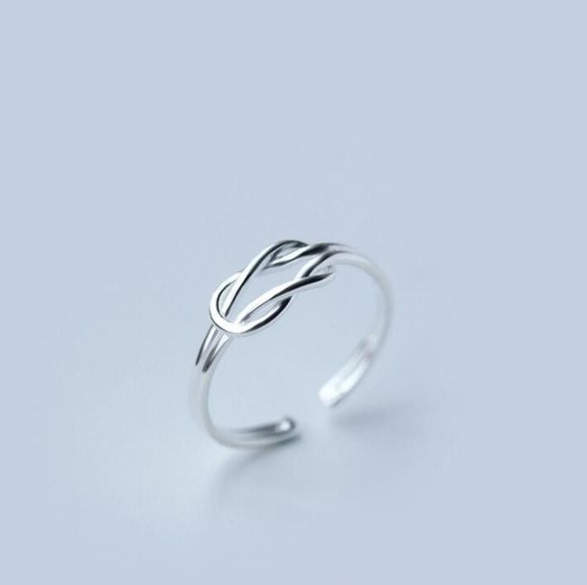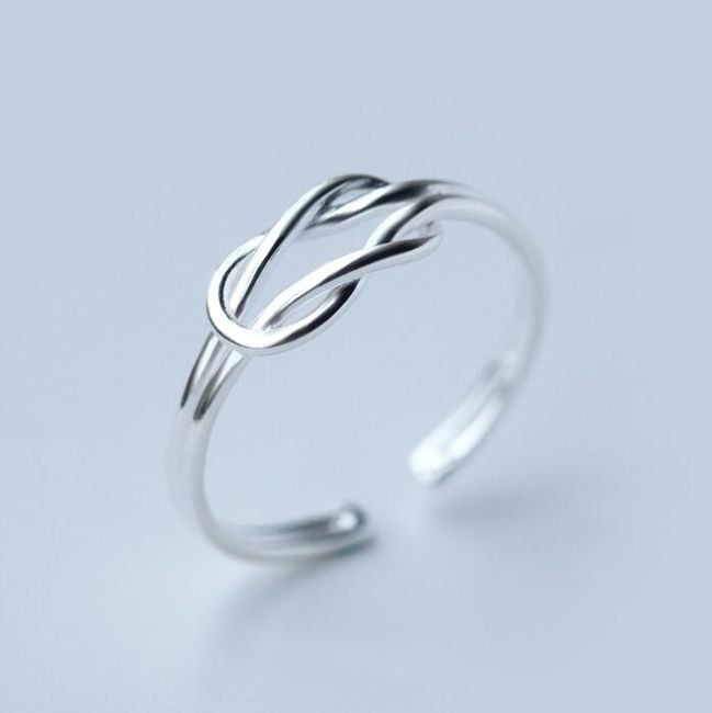 Ženski nakit prsten u obliku čvora u srebrnoj boji.