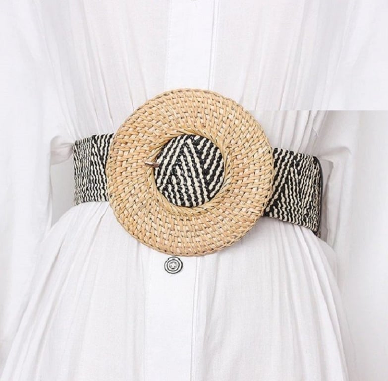 Ženski slamnasti remen s velikom kopčom